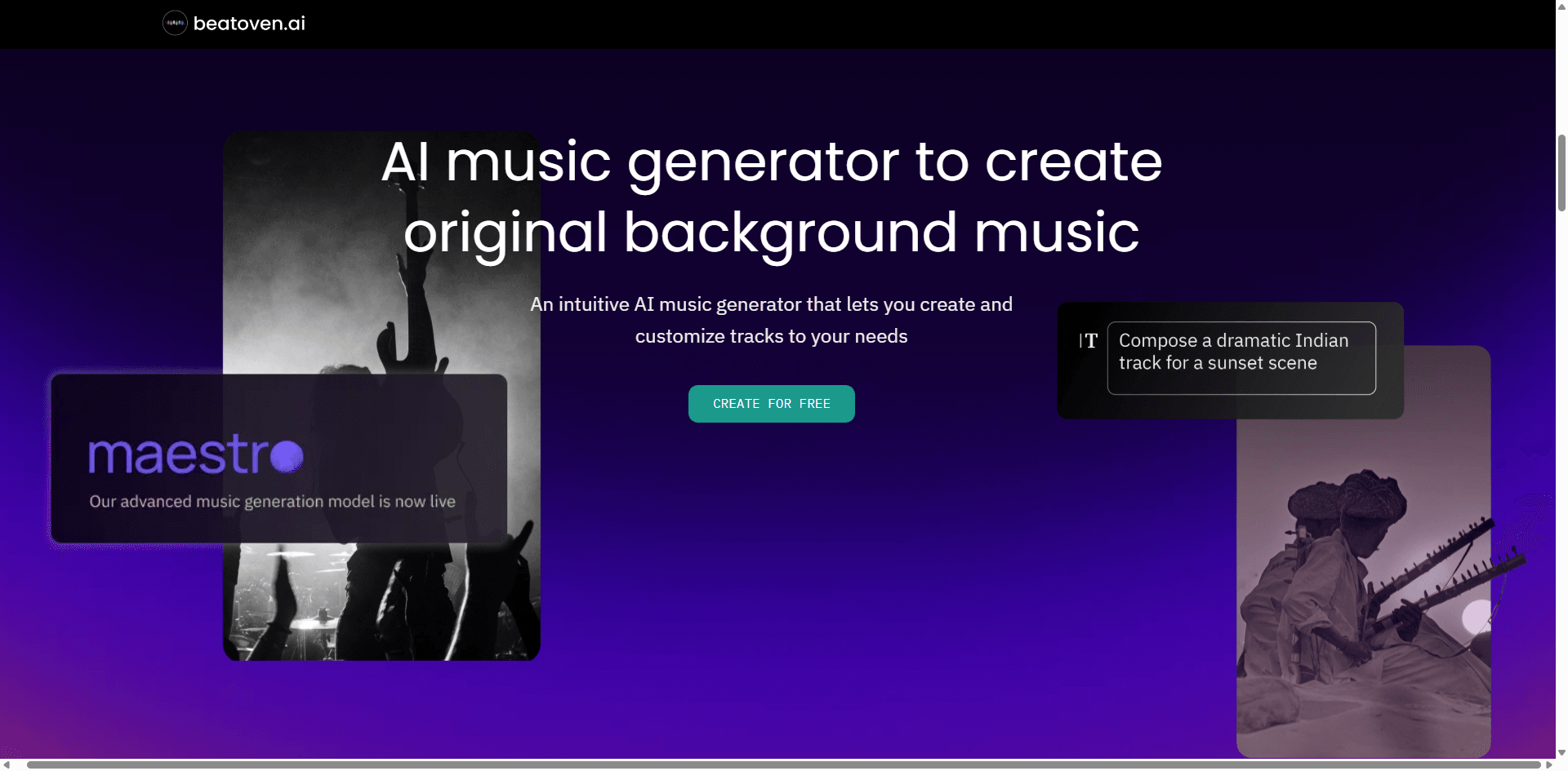| 5 | Beatoven.ai | Adaptive background music | ❌ Instrumental | Limited trial | $6/month |