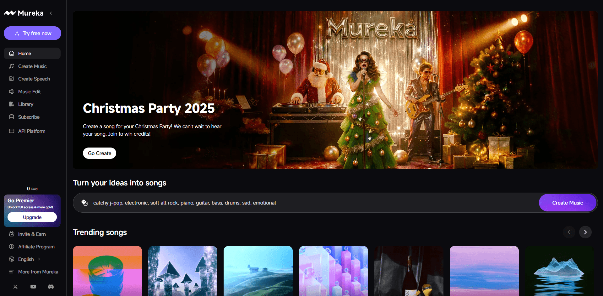 Boomy removes all friction from AI music creation. Choose a style, click "Create Song," and you'll have a complete track in seconds. It's the simplest tool on this list for better and worse.